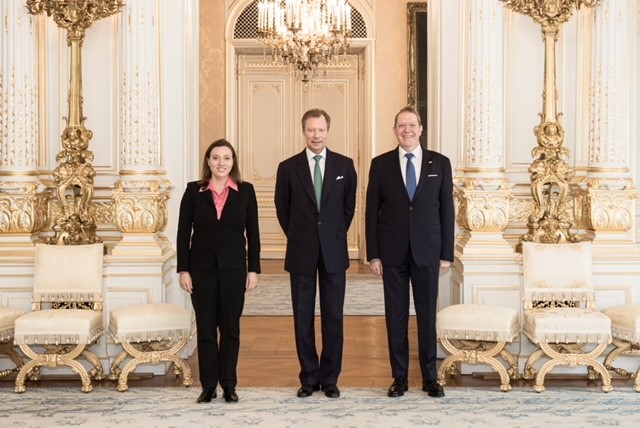 A l’occasion de la passation des pouvoirs à l’Administration de l’Enregistrement, des Domaines et de la TVA au 1er octobre, S.A.R. le Grand-Duc a reçu en audience le 3 octobre, Mme la Directrice Stella HUBER et M. le Directeur honoraire Romain HEINEN, au cours de laquelle il s’est informé de l’état de fonctionnement de l’administration financière et des défis d’avenir.