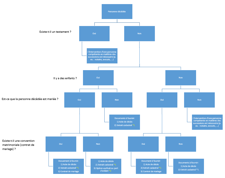 En cas d’existence d’un testament, une personne compétente dans la matière des successions (p. ex. : notaire, avocats, …) doit être contactée.